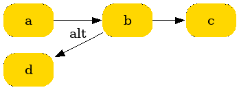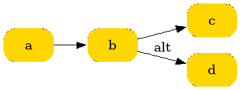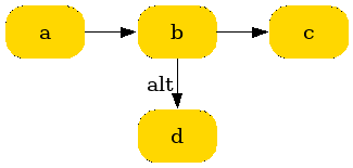 This is not quite what we want though, since now d is basically a top-level node. What we can do instead is put b and d into a group together and declare that all the members of that group have the same "rank".