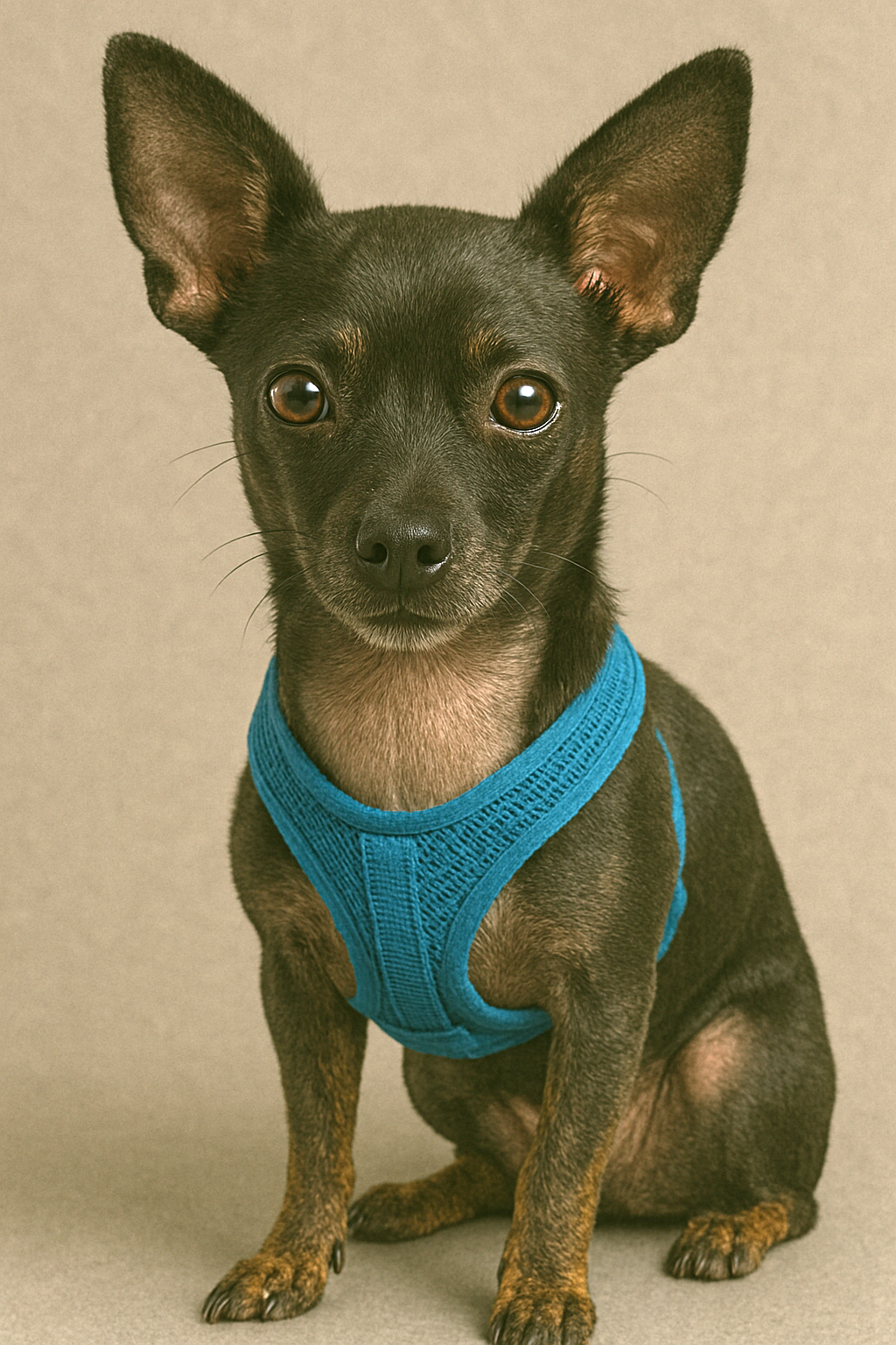 | Create an image of a dog that is 70% Chihuahua, 20% mini pincer, and 10% mutt | ![]() |